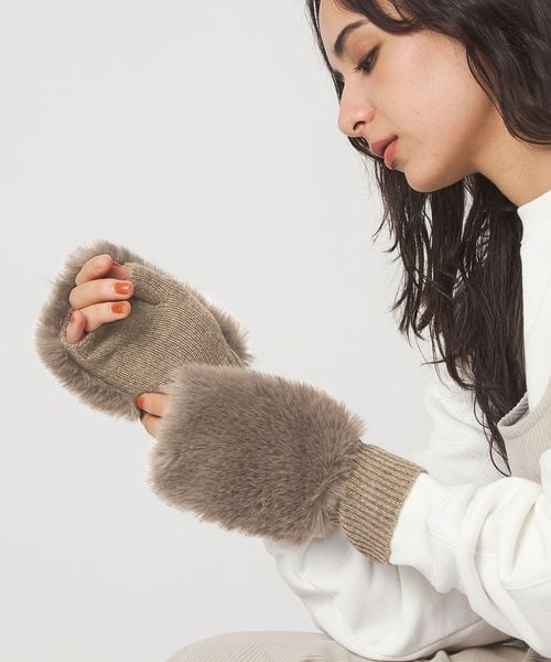 毎年ご好評頂いている、ファーライク素材とニットを組み合わせたグローブ。