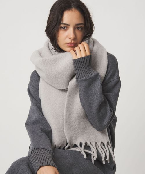 バルキーな風合いで、暖かくこなれた印象になるマフラー。