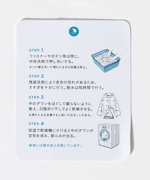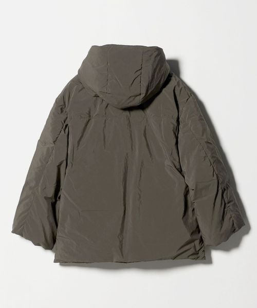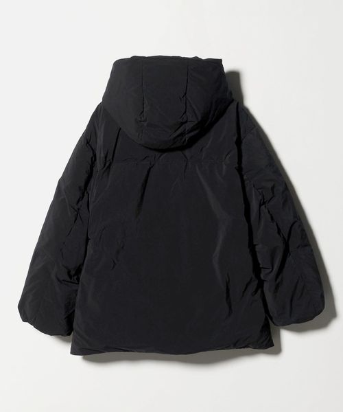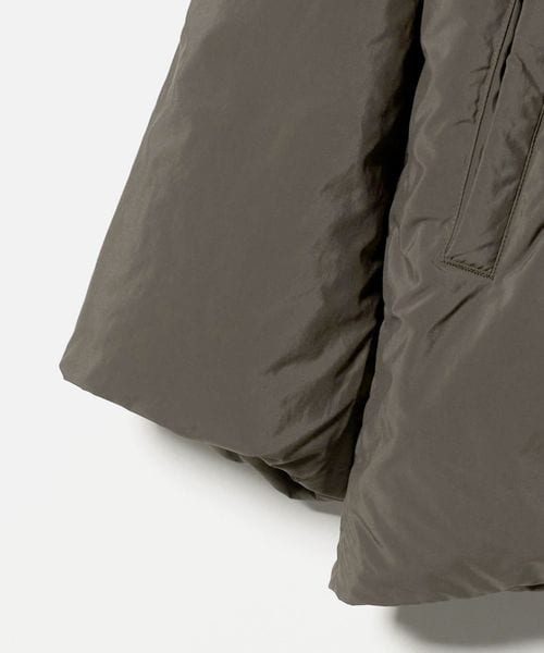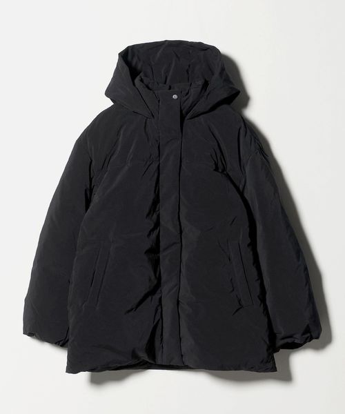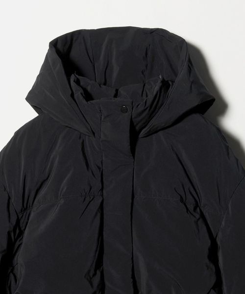 スカートでもパンツでも合わせやすく、着回しのきく丈感のダウン。
