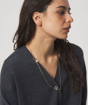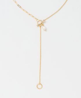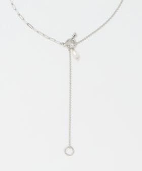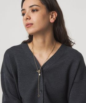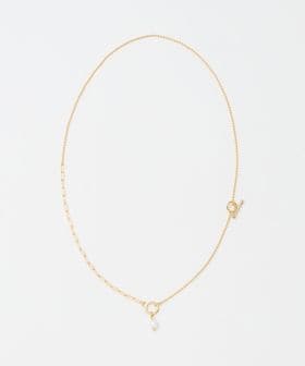 淡水パールと、程よく存在感のある太さのチェーンを掛け合わせ、バランスの良い配置で仕上げたネックレス。