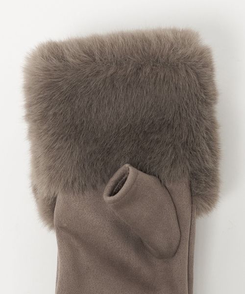 指先メインでフェイクファーを施し、つけていただくとアウターの袖の裾からフェイクファーが覗くようなイメージのアームウォーマー。