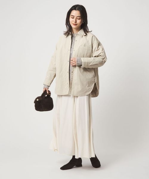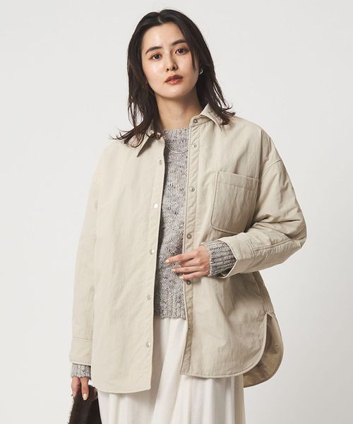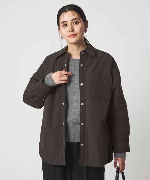 一枚着としても、軽めのアウターとしても活躍する薄手の中わた入りシャツ。