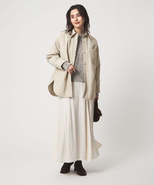長めの着丈なので、Iラインスカートやワンピースとの縦長シルエットのコーデが◎
