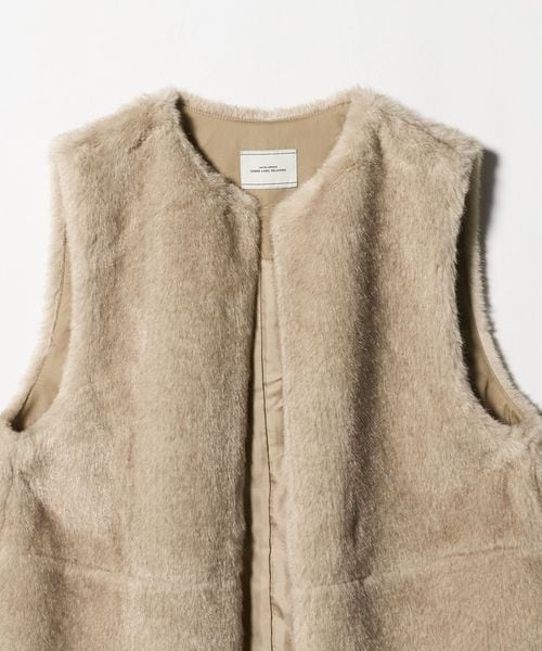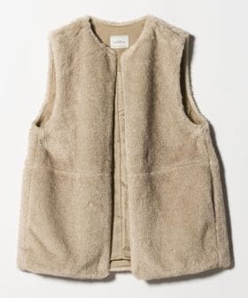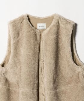 華やかな印象のフェイクファーは、さっと羽織って決まるベストタイプ。