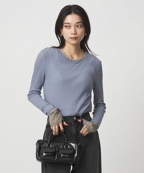 袖口にチュール素材をドッキングすることで、抜け感のある印象に仕上げたカットソー。