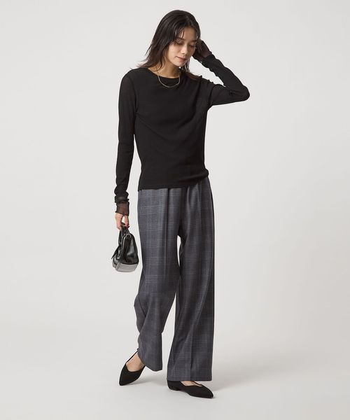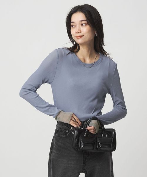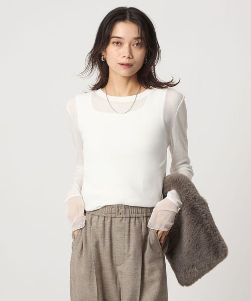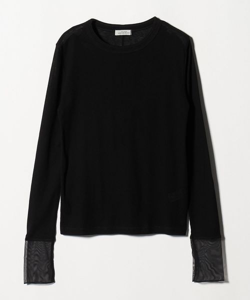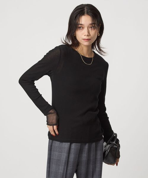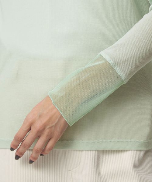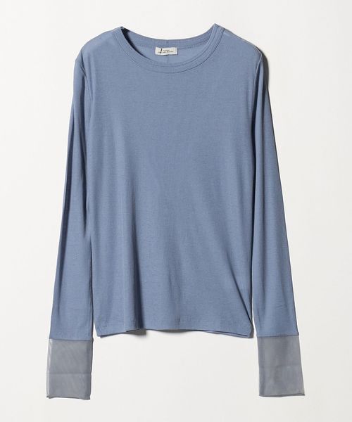 袖口にチュール素材をドッキングすることで、抜け感のある印象に仕上げたカットソー。