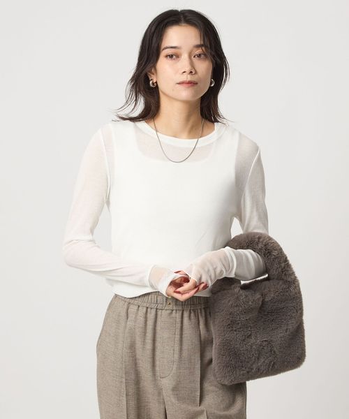 ニットやシャツのインナーとして着用する際は、袖口からチュールを見せるのがおすすめです。