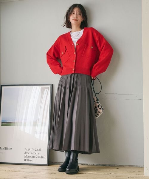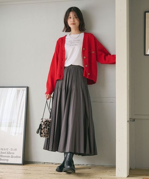 ワイドパンツやフレアスカートなど、ボリューム感のあるシルエットのボトムスと好相性です。