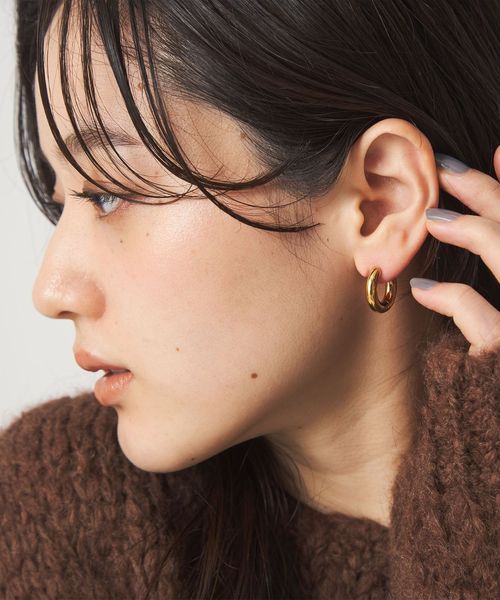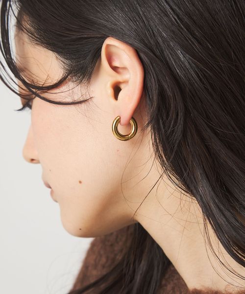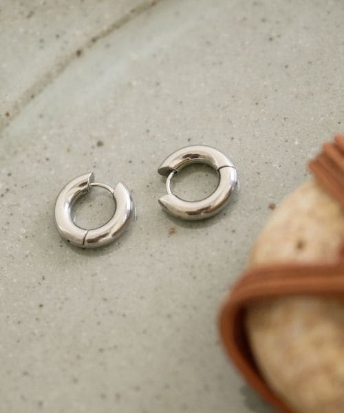 小さすぎず大きすぎずのサイズ感がポイントの、定番デザインのフープピアス。