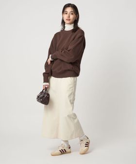 タイトスカートやプリーツスカートと合わせたフェミニンな着こなしもおすすめ。