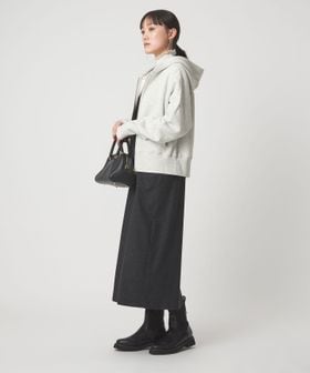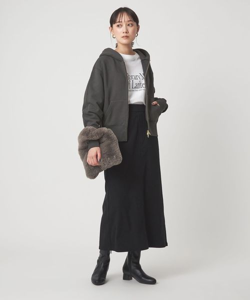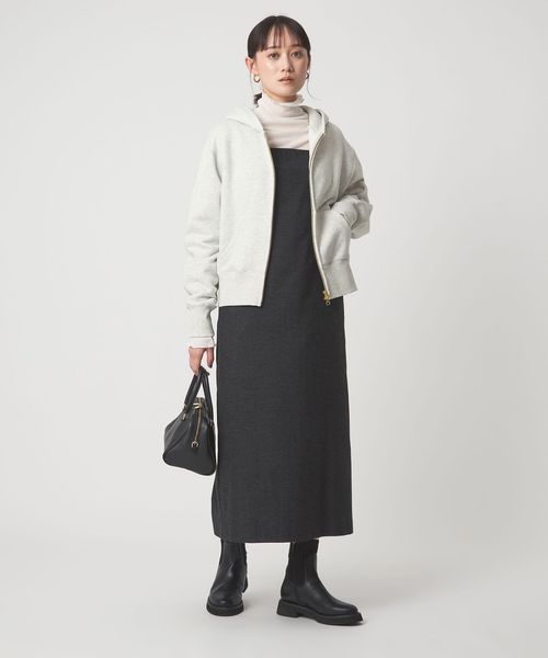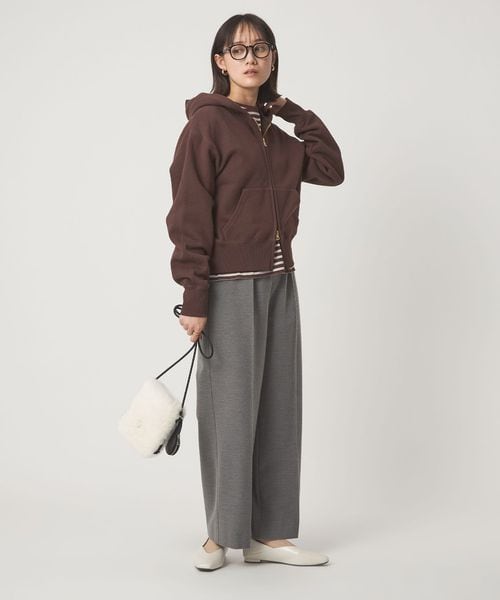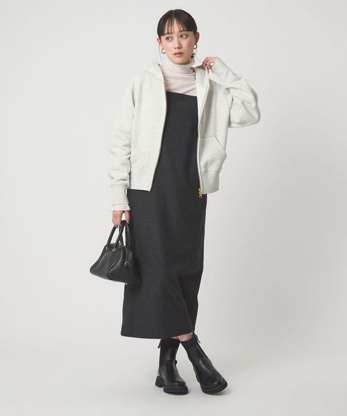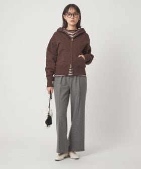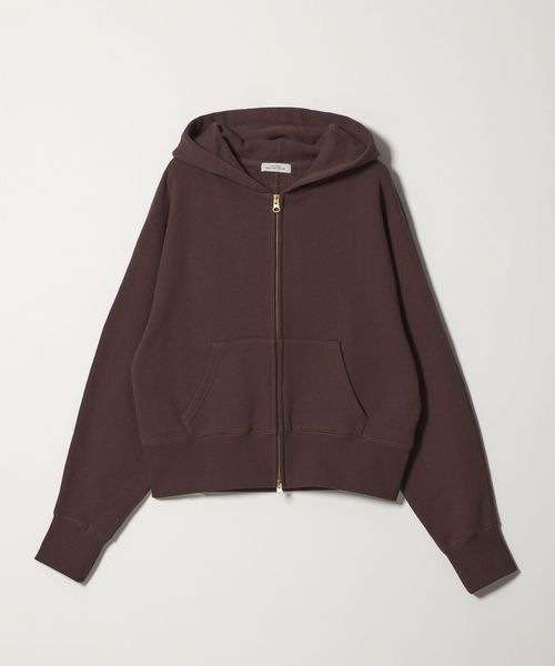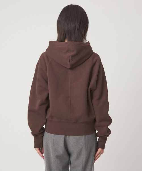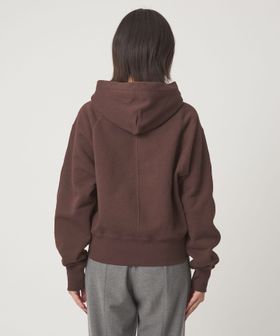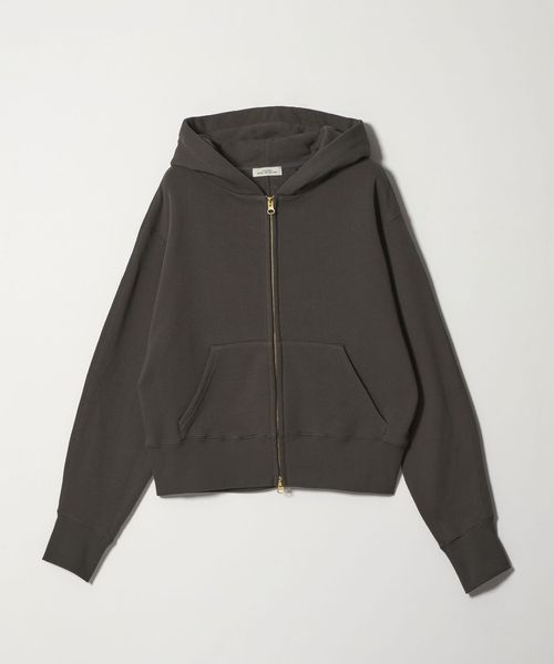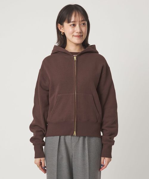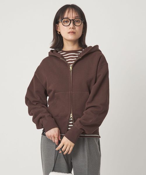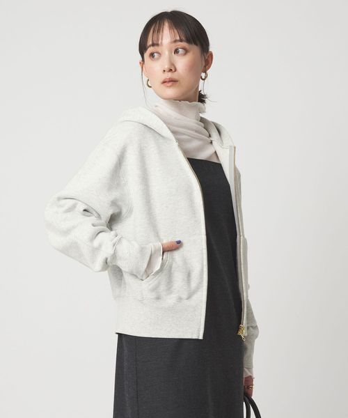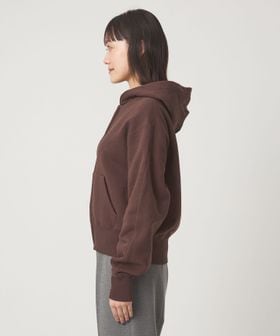 女性らしく着こなせるほどよく立体的なジップフーディ。