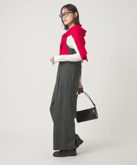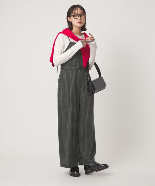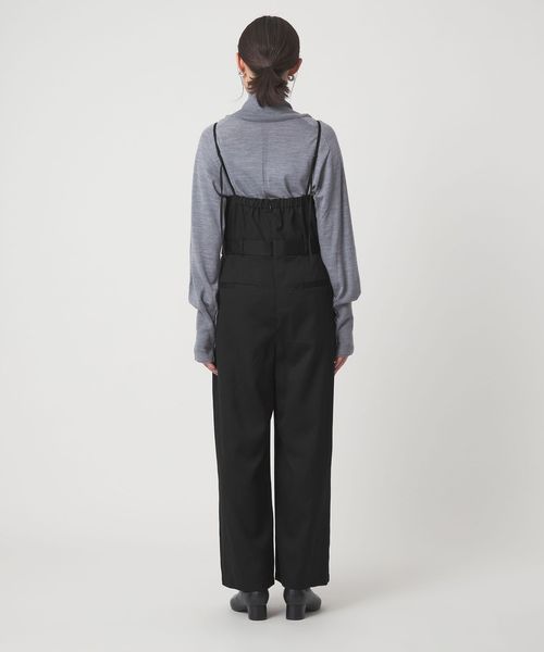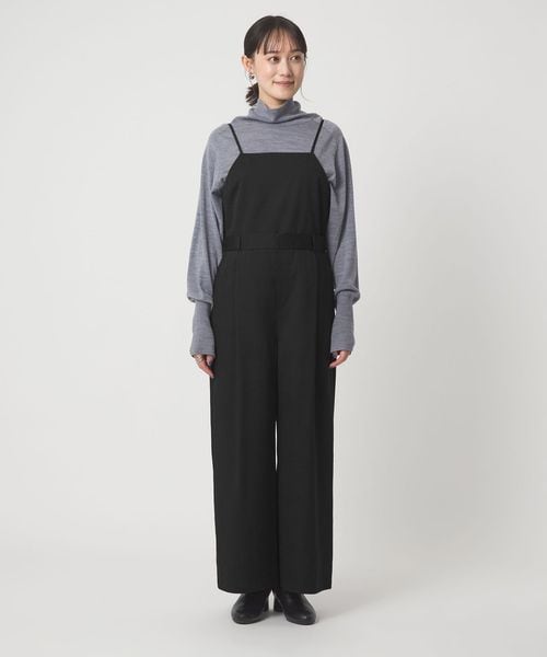 キャミソールとパンツのレイヤード風のデザインで、ウエストベルトを立体的にすることで、キャミソールをインしたようなマニッシュな印象に仕上げました。