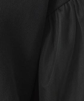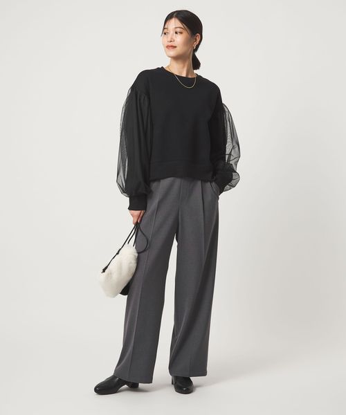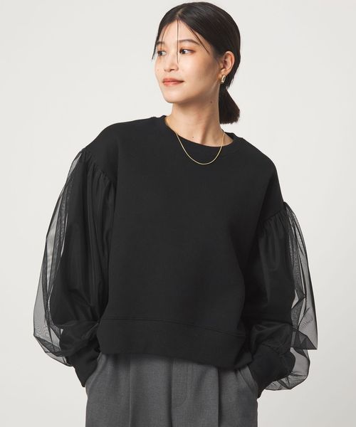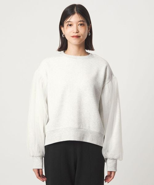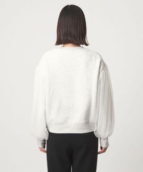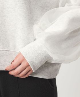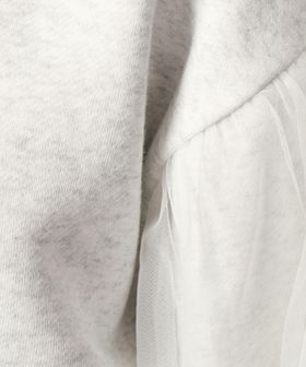 スウェットに袖部分にはチュールをかぶせた異素材コンビデザイン。