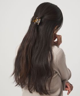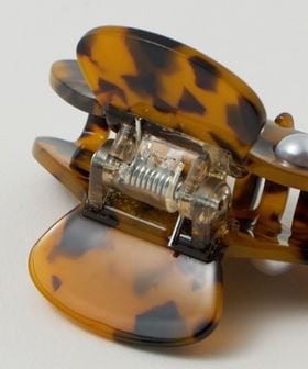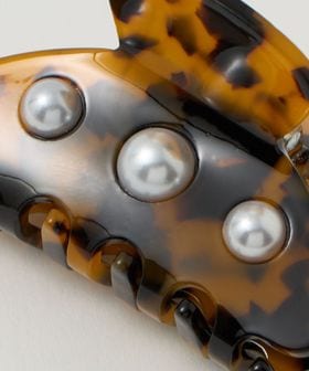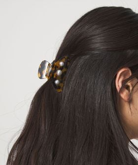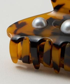サイドに施されたモチーフが映えるヘアクリップ。