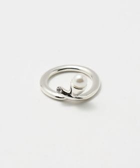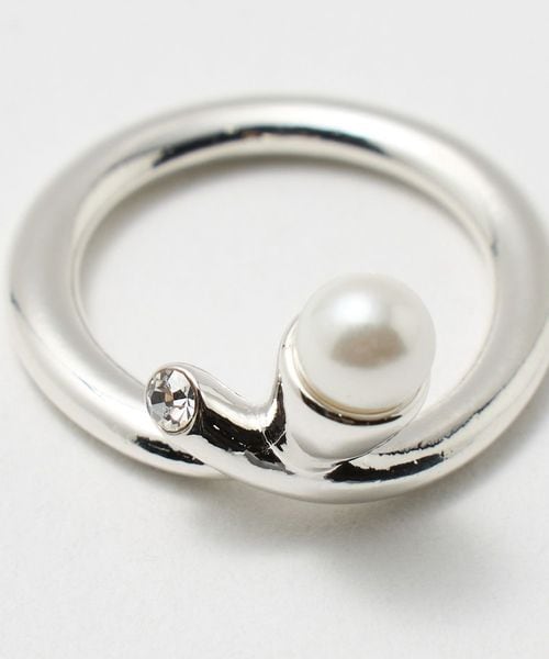 ガラスパールを使用したアシンメトリーデザインのリング。