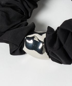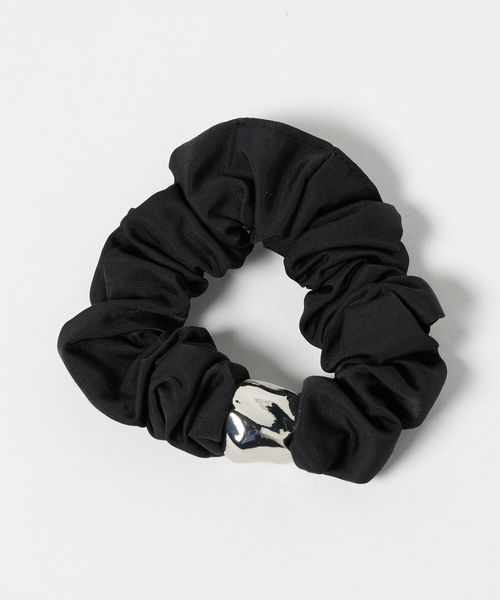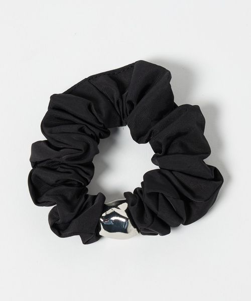 少し太めのシュシュ(1本)には金属パーツをつけることで、キラッとこだわりのデザインに仕上げています。