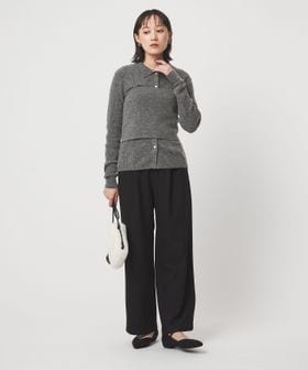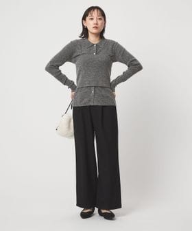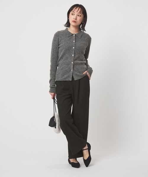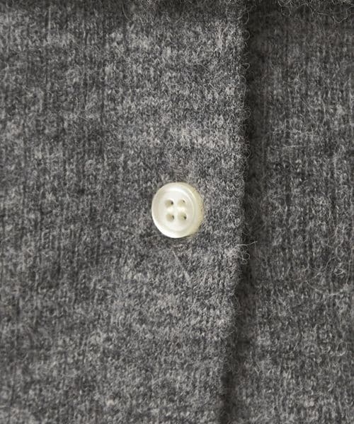 カーディガンの一番下のボタンをあえて外した、抜け感のある着こなしもおすすめです。