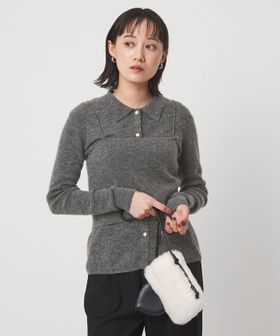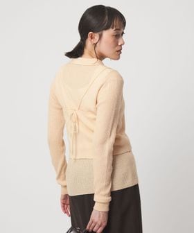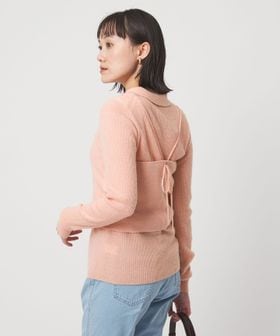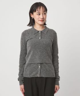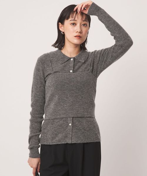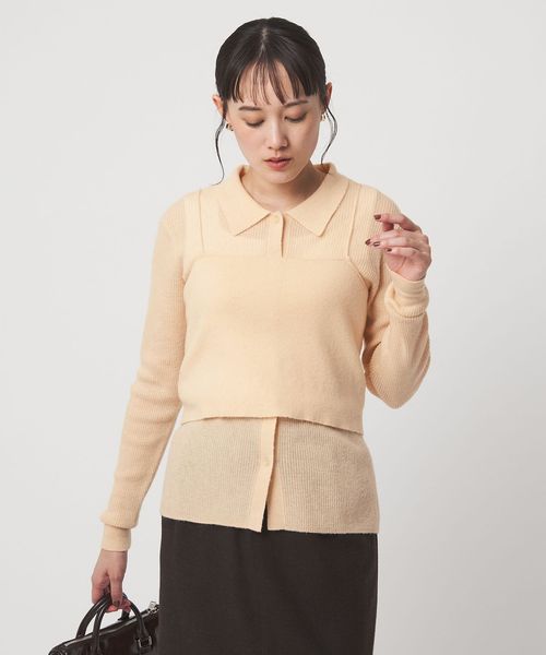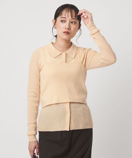 少し透け感のある襟付きリブカーディガンと、編地が異なるキャミソールのセットアイテム。