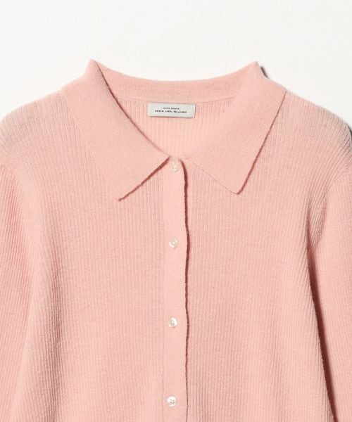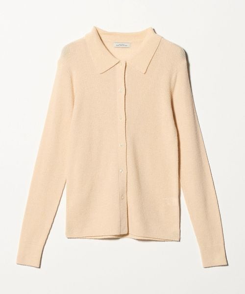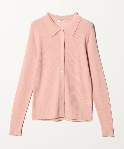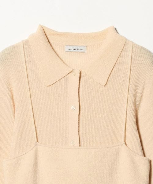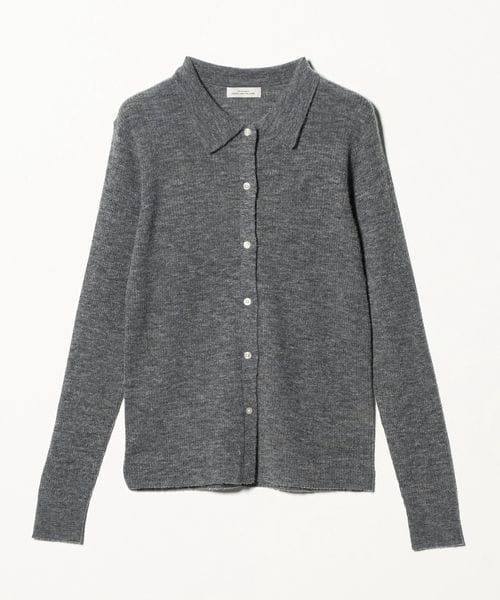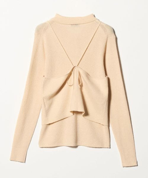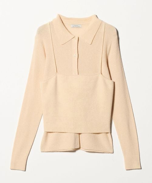 少し透け感のある襟付きリブカーディガンと、編地が異なるキャミソールのセットアイテム。