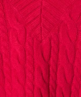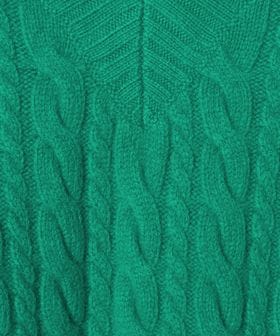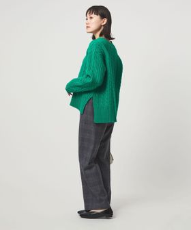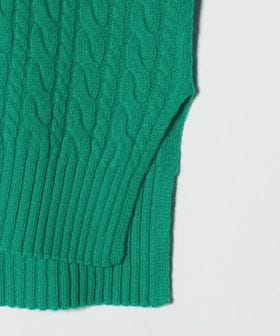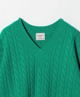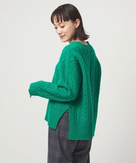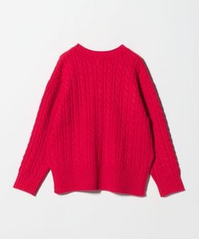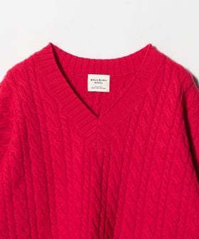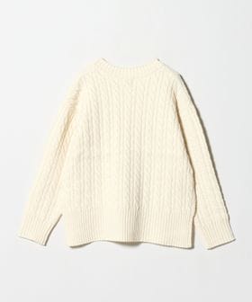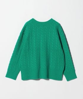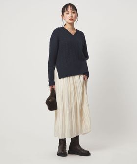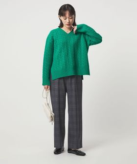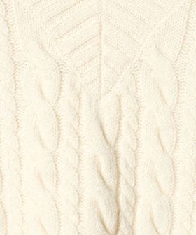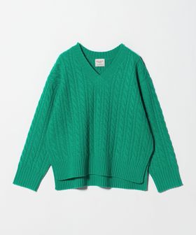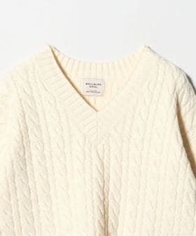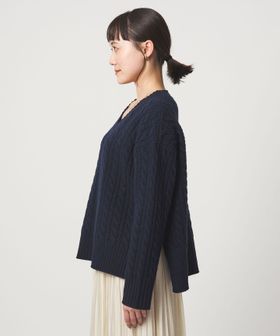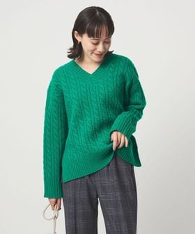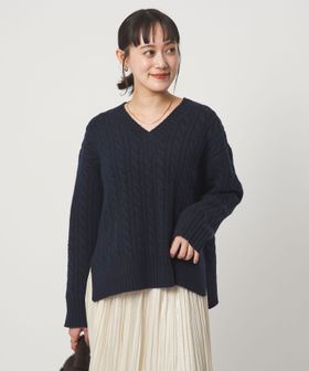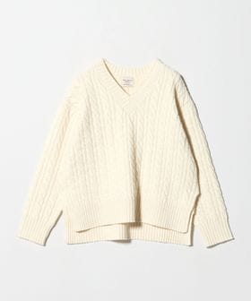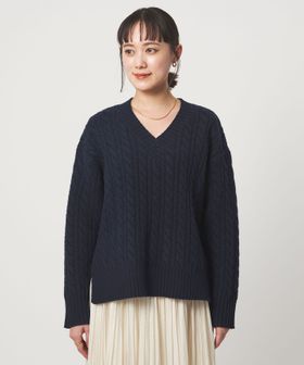 ふっくらとした素材感でアランケーブル柄がポイントのVネックニット。