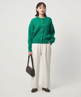 ふくらみのある素材と、アラン柄が目を惹くホリデーシーズンにぴったりな一着です。