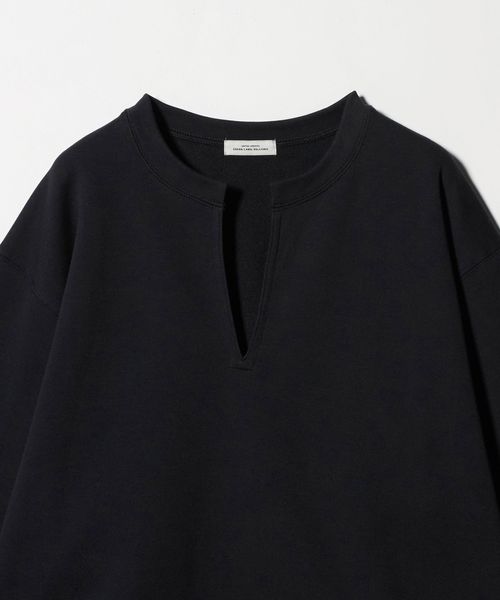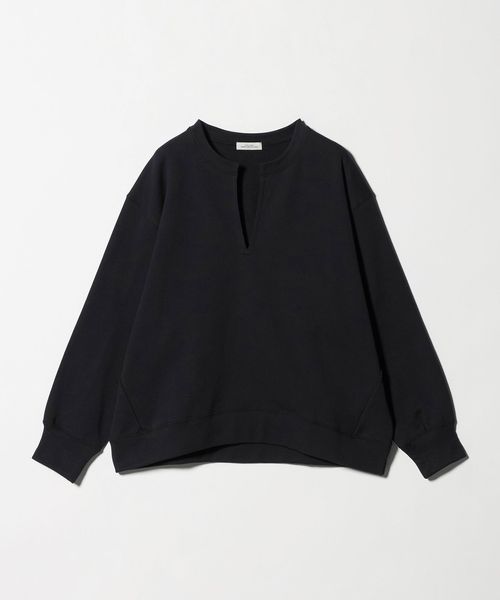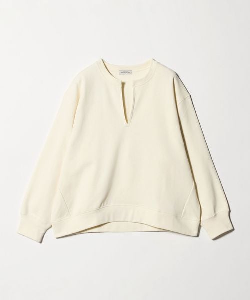 上品な印象で着用できるキーネックのプルオーバー。