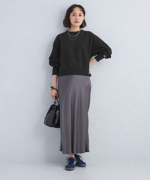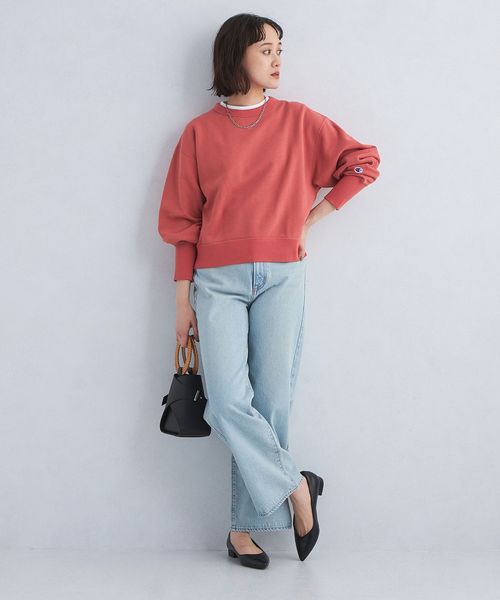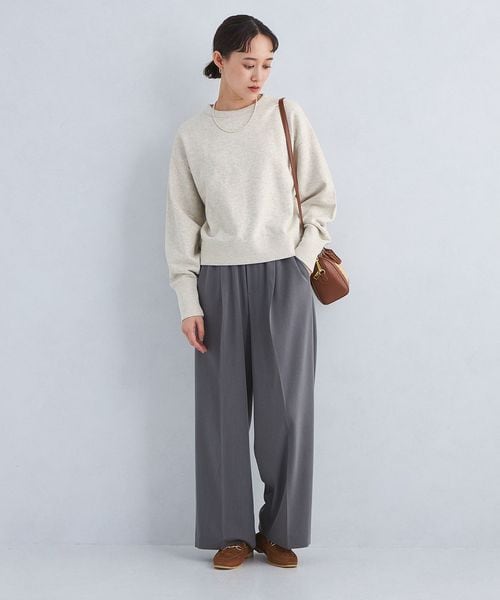 ドロップショルダーとほどよくゆったりした身幅でこなれ感を演出したスウェット。