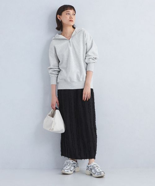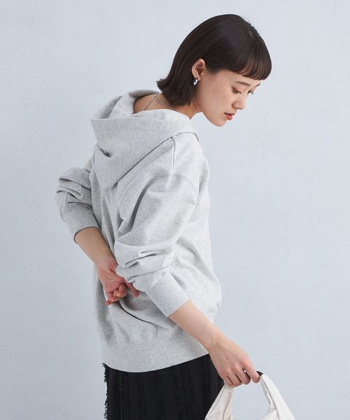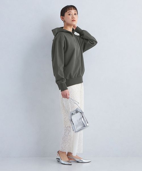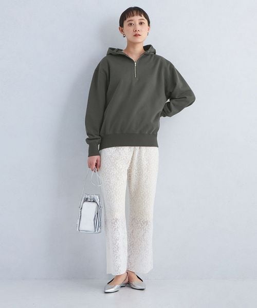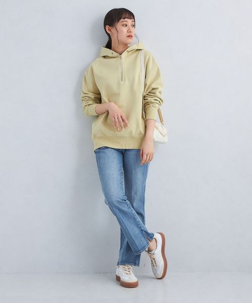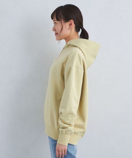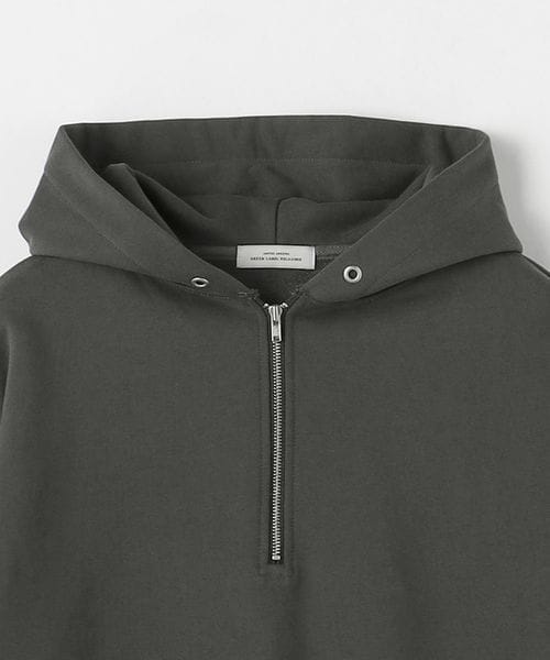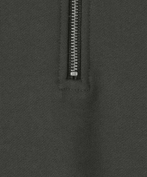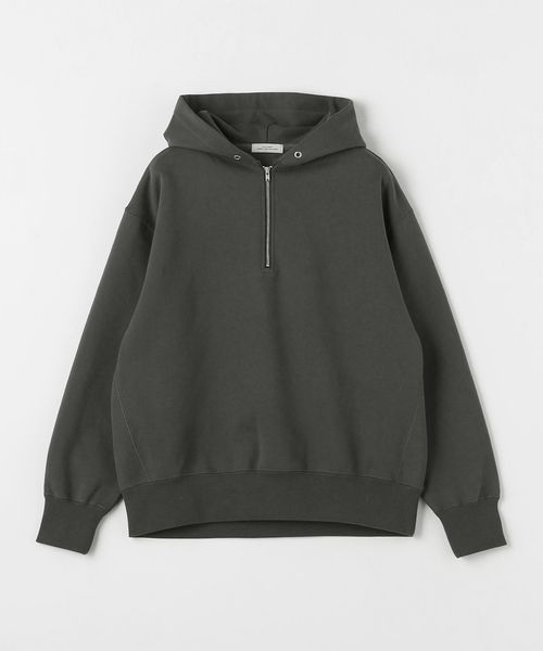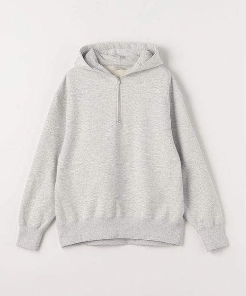 フロントのジップが目を惹く、ハーフジップフーディ。