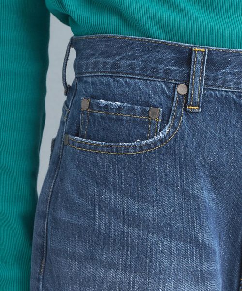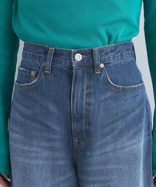ほどよくゆとりのあるワイドストレートシルエットのデニムパンツ。