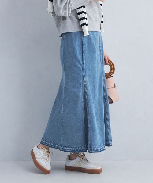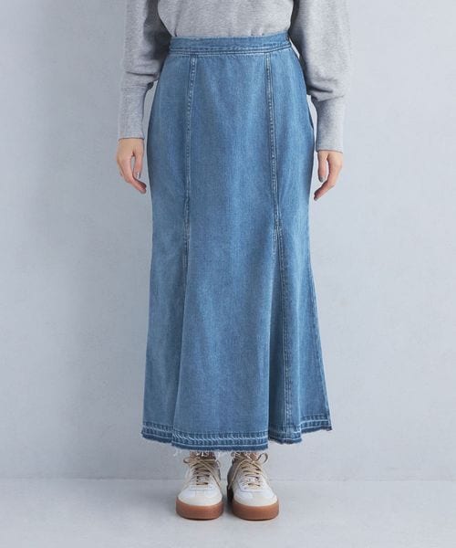 腰まわりはすっきりと、裾にかけて広がるシルエットのデニムスカート。