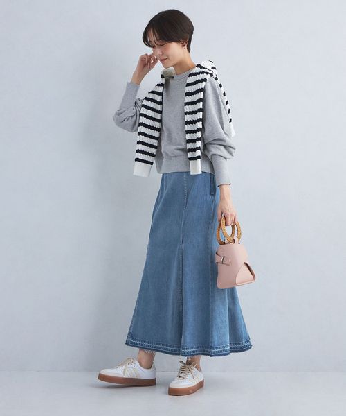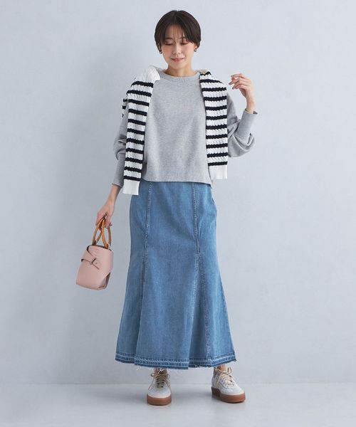カジュアルな印象のデニムスカートもどこかフェミニンな雰囲気で着用いただけます。