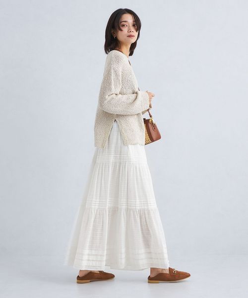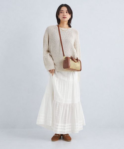 エアリーなボリュームスカートに合わせてフェミニンな着こなしもおすすめです。