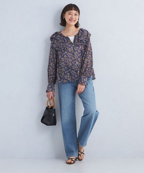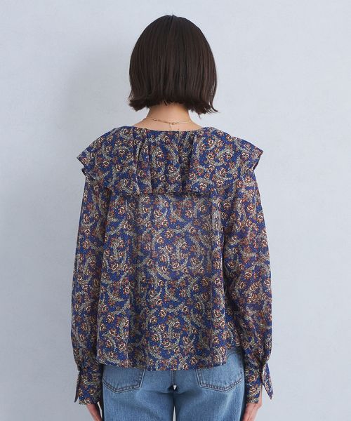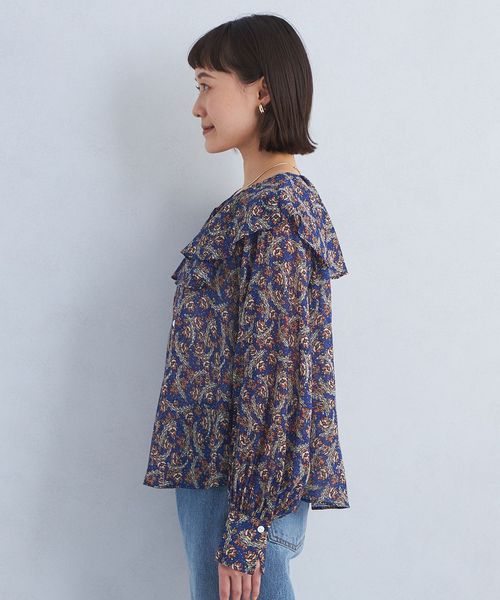 プリント ラッフル ブラウス
