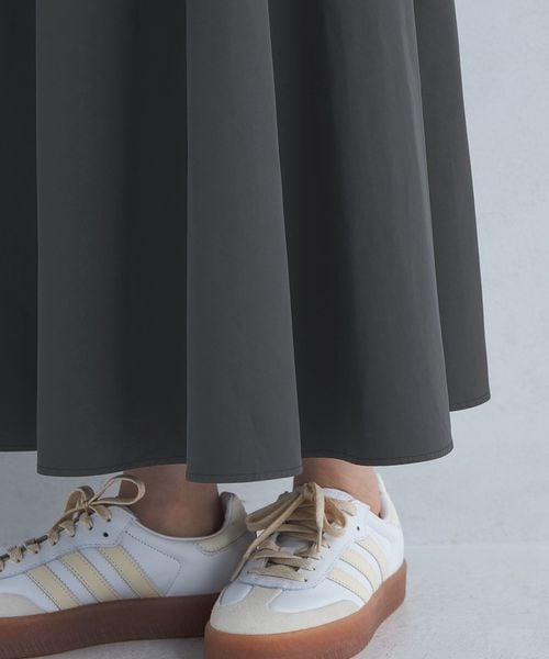 スニーカーやフラットパンプスまで合わせるシューズを選ばない一着。