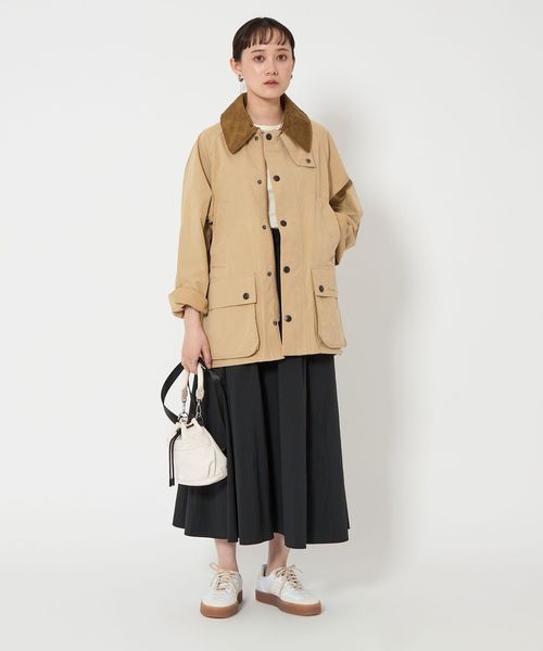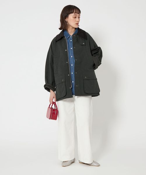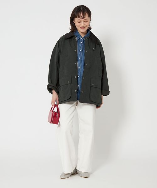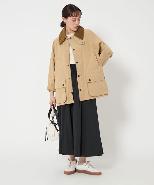 ワントーンコーディネートにさっと羽織って洗練された雰囲気に。