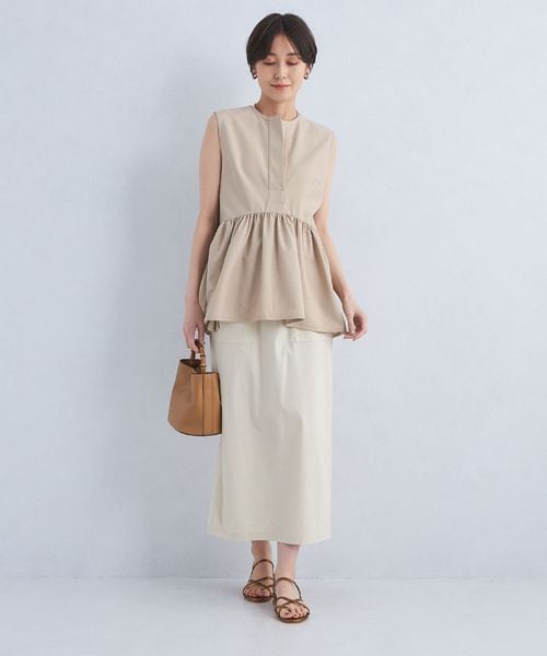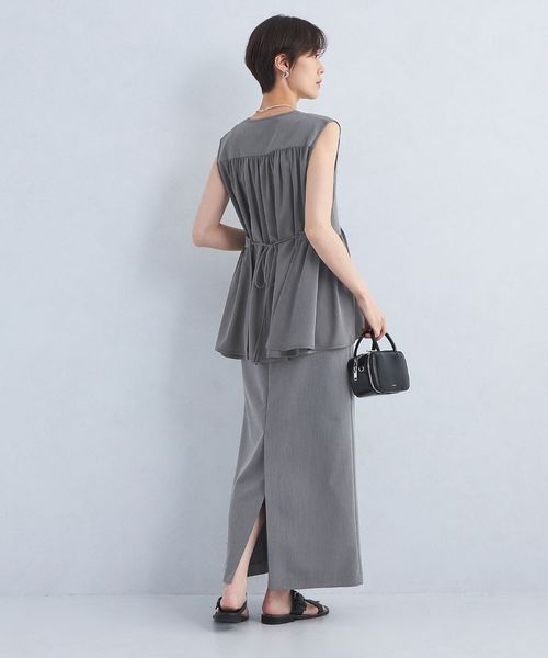 ウエストから裾に向かって広がるギャザーデザインがフェミニンな印象です。