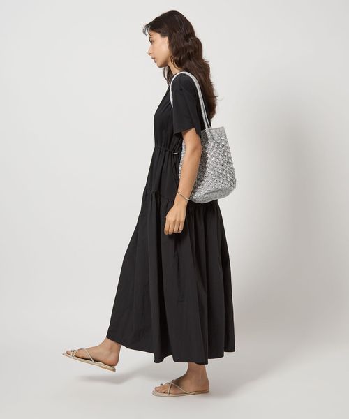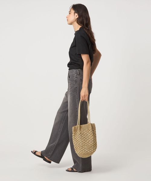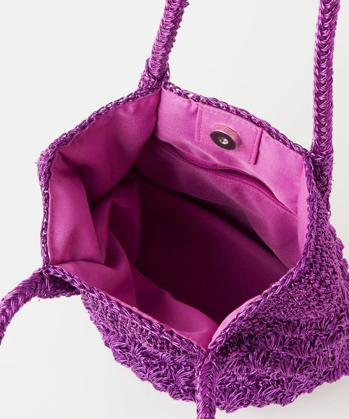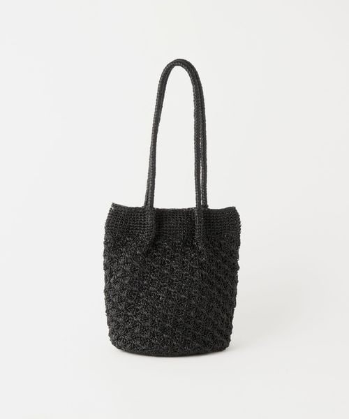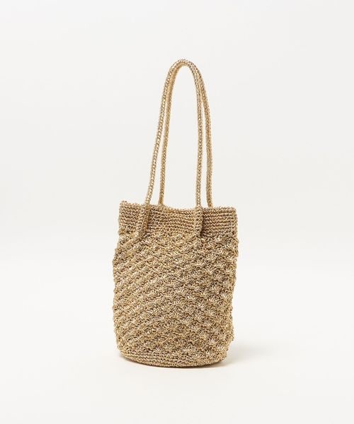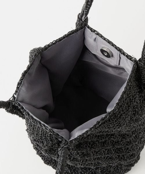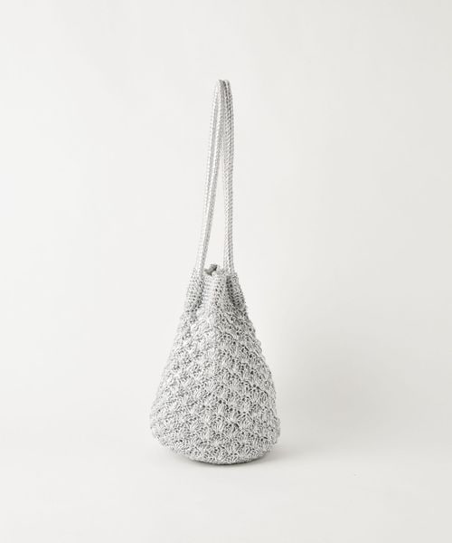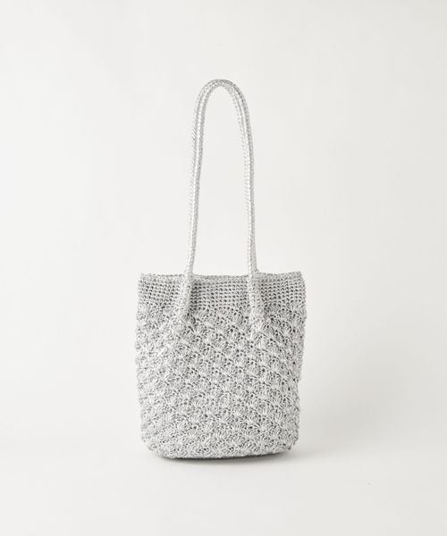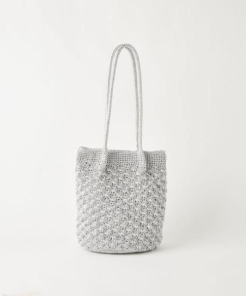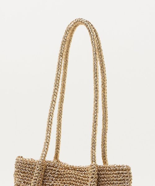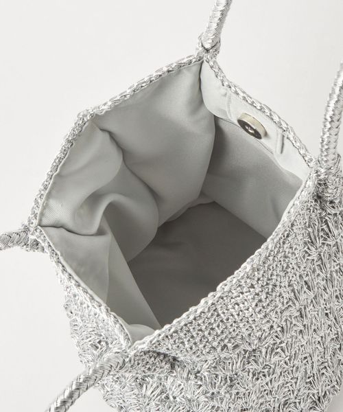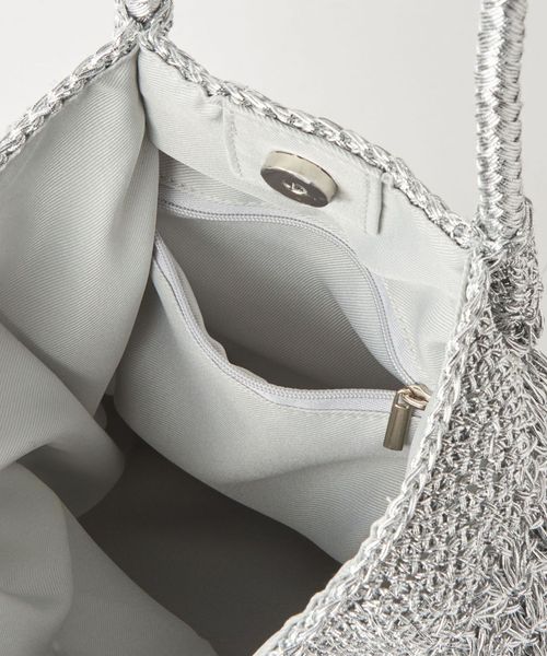 スタイリングのアクセントになるメタリックヤーンを使用したバッグ。