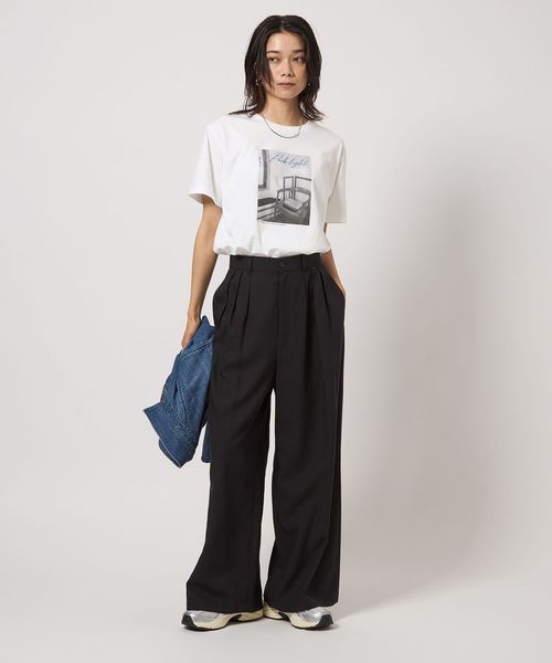 プリントパンツとさらっと合わせて洗練された着こなしに。