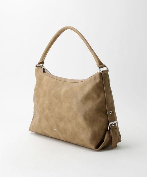 ナチュラルにへこんだシェイプが魅力的なバッグ。