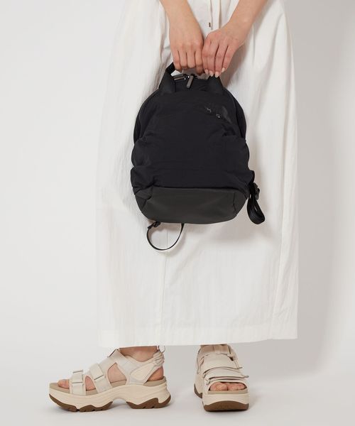 柔らかいタッチ感をもつ160デニールのリサイクルナイロンを使用した、シンプルでクリーンな印象の女性用ミニデイパック(7L)。