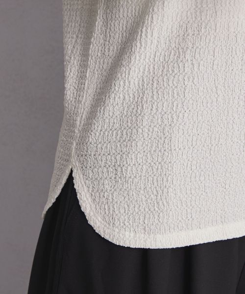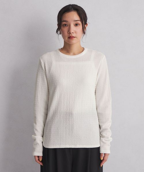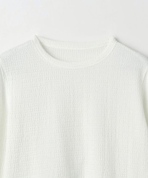 一枚でも、インナーとしても活躍するフクレジャカードカットソー。