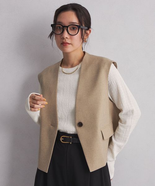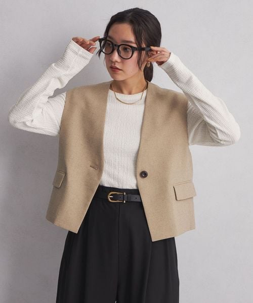 スウェットやカットソーとレイヤードしやすい裾のラウンドデザインもポイント。