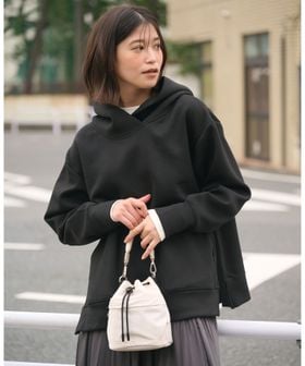 柔らかさとふくらみのあるダンボール生地を使用したフーディ。
