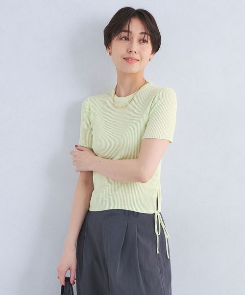 垂らしたままでも、ぎゅっと絞って動きをつけても可愛い一枚です。