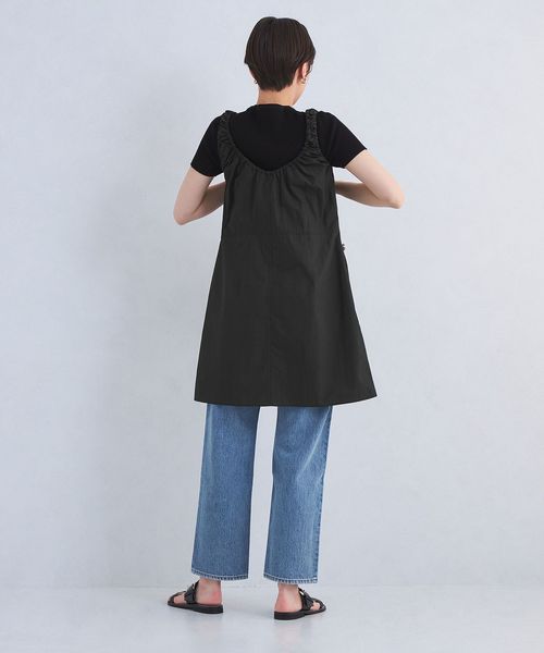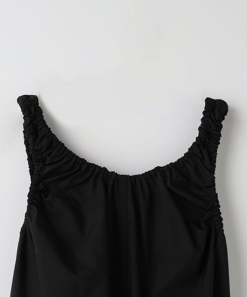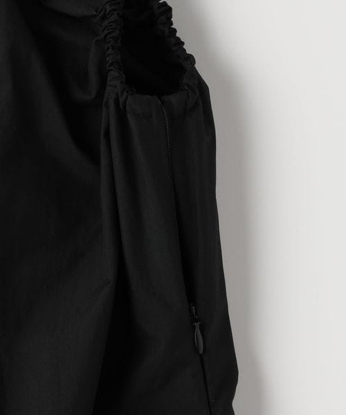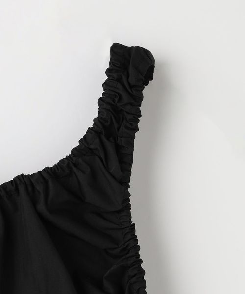 ネックと袖のギャザーがアクセントになっており、フェミニンさもありつつ、シンプルすぎないデザインが魅力。