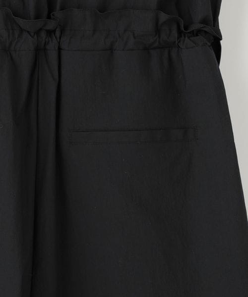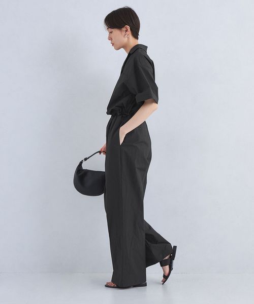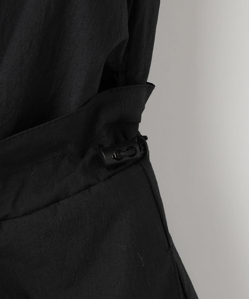 ボタンやウエストのゴムなど全てブラックで統一されており、モードな雰囲気でかっこよく決まります。