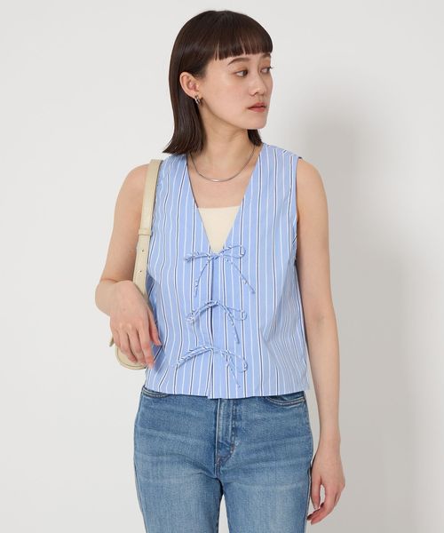 フロント部分の華奢なリボンがポイントで大人フェミニンなベスト。