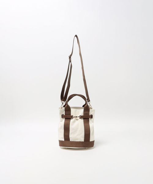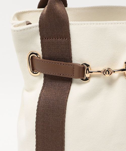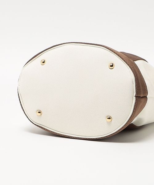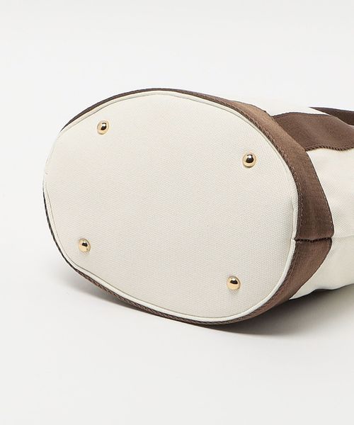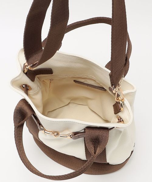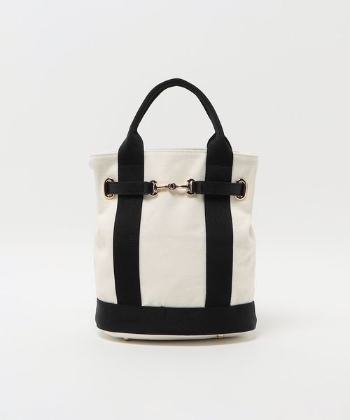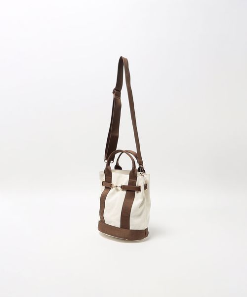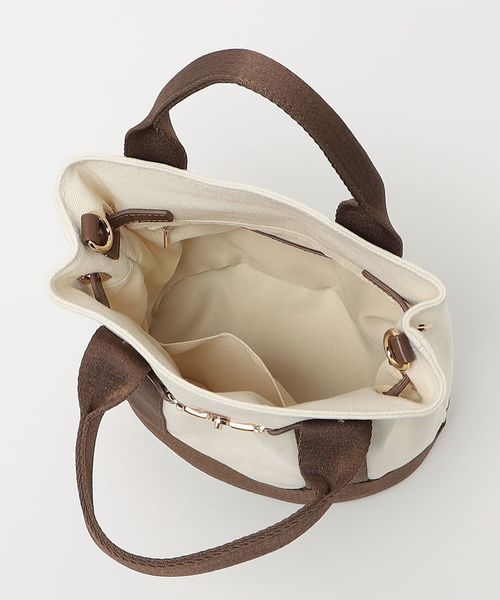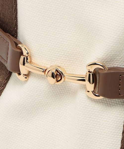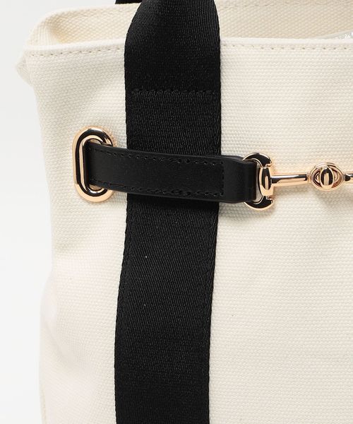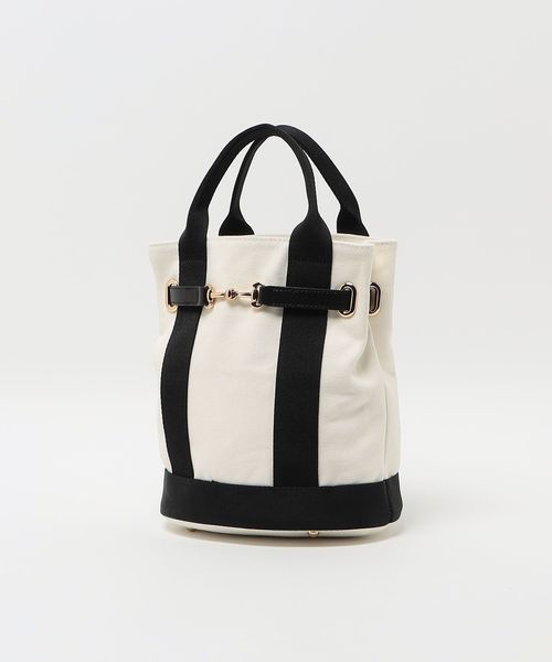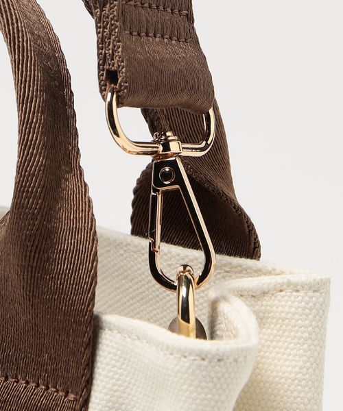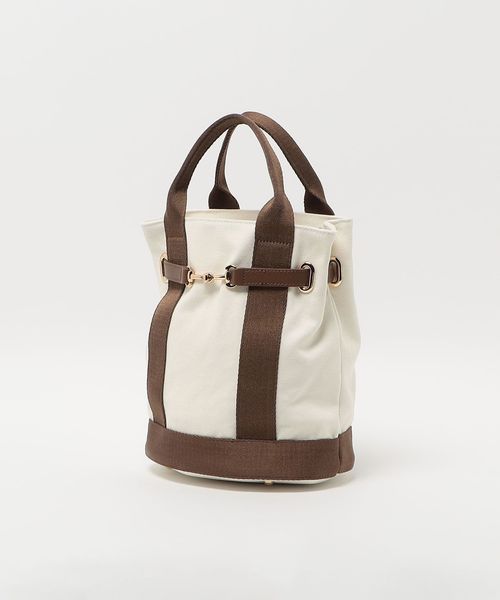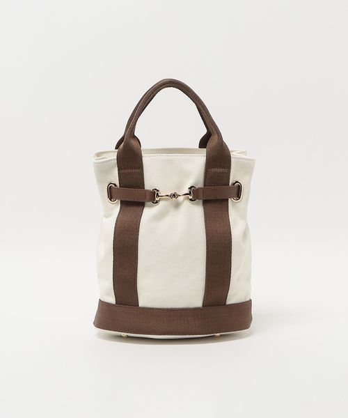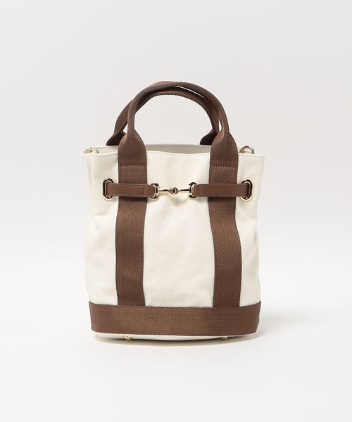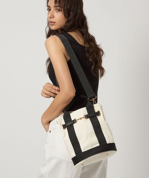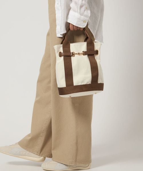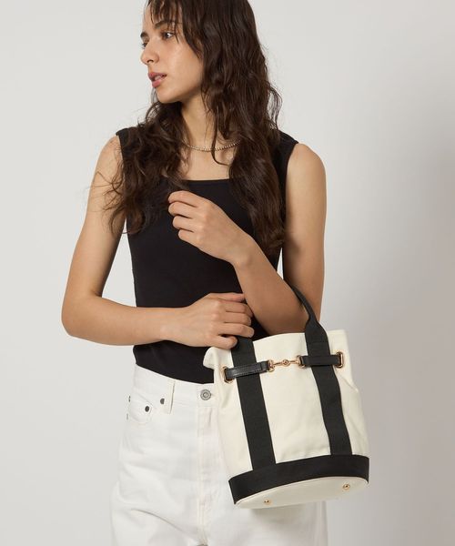 キャンバスバッグですが、金具使いにより、カジュアルさがありながらも上品でこなれたスタイリングに仕上がります。