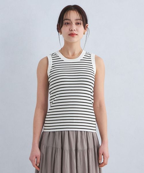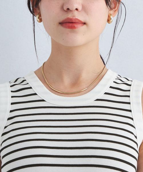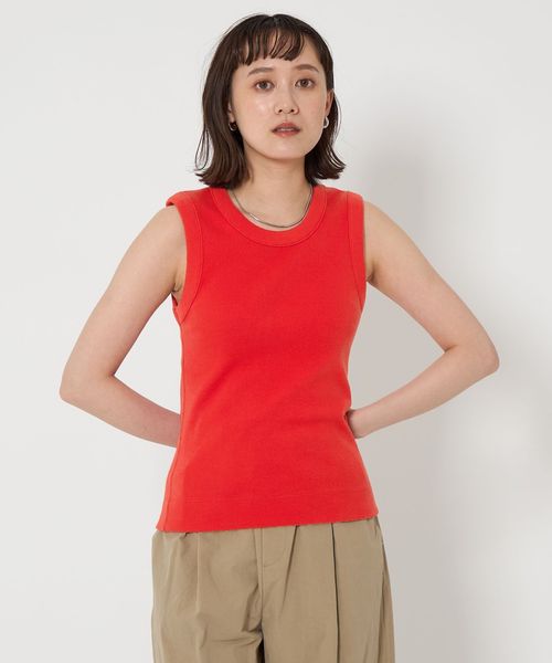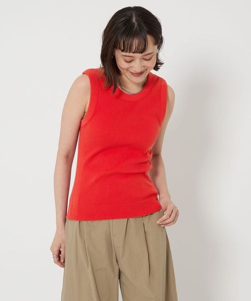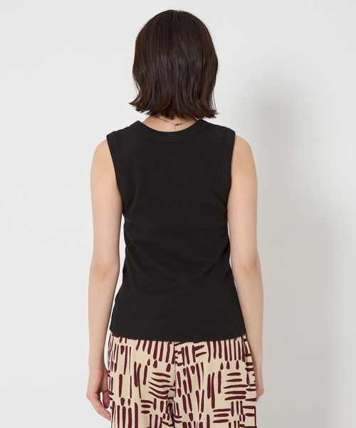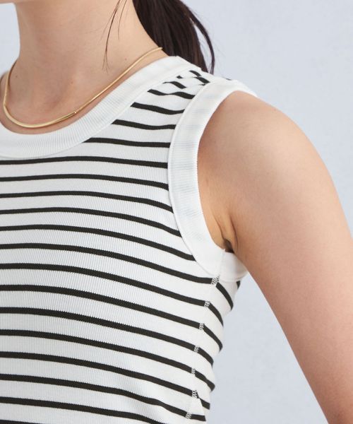 ネックとアームホール部分を太めのバインダー仕様にデザインしたタンクトップ。