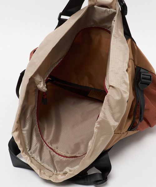 インサイドにはラップトップポケット、パッカブルポケット兼用のオーガナイザーポケットを装備していて雑誌やタブレット、折り畳み傘まで楽々入るサイズ感で機能的に整理整頓、収納出来る作りになっています。